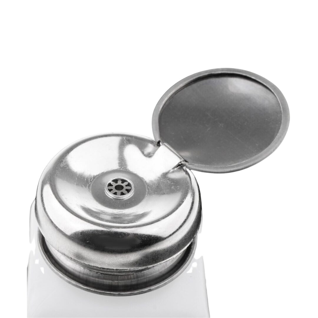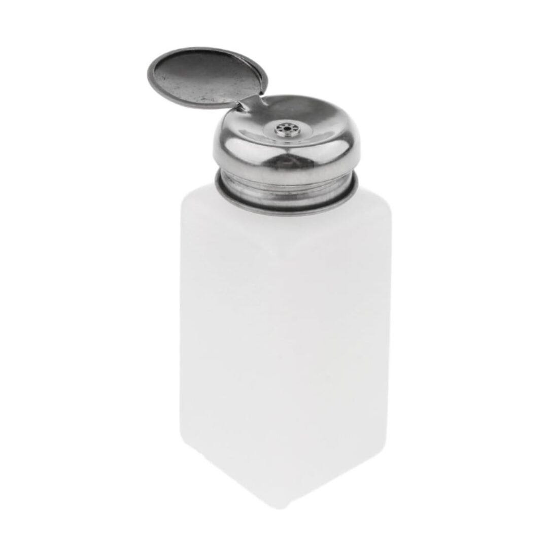 The 250ml Metal Head Press Bottle is a durable and convenient dispensing bottle designed for nail technicians and beauty professionals. It features a sleek metal pump head that allows easy, one-handed operation, perfect for dispensing nail polish remover, alcohol, or other liquids during nail care routines. Its sturdy construction and spill-resistant design make it ideal for professional salons or personal use at home.