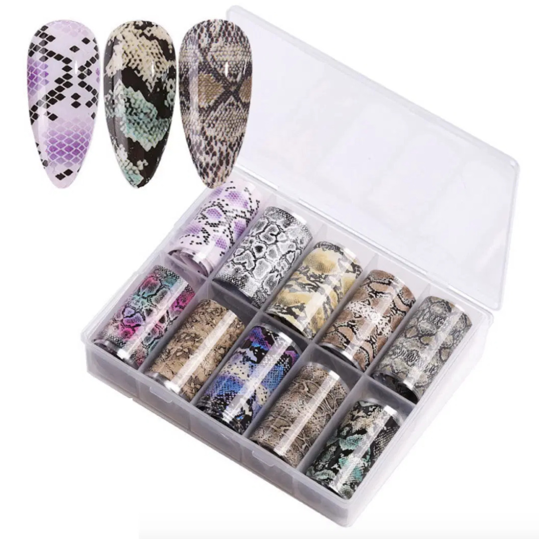 - 10 sheets of assorted nail foils (each measuring approximately 4×20 cm)