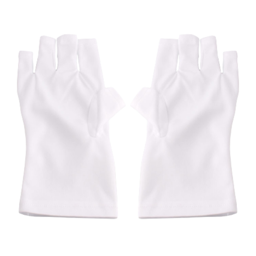 UV White Gloves are specially designed to protect your hands from the harmful effects of UV and LED light exposure during nail treatments. These gloves are crafted from high-quality, lightweight, and durable material that blocks harmful UV rays, keeping your hands safe and comfortable. The sleek white design is not only stylish but also functional, allowing for flexibility and ease of movement during use. Perfect for both professional salon use and at-home manicures, these gloves are a must-have accessory for anyone frequently using UV or LED nail lamps.